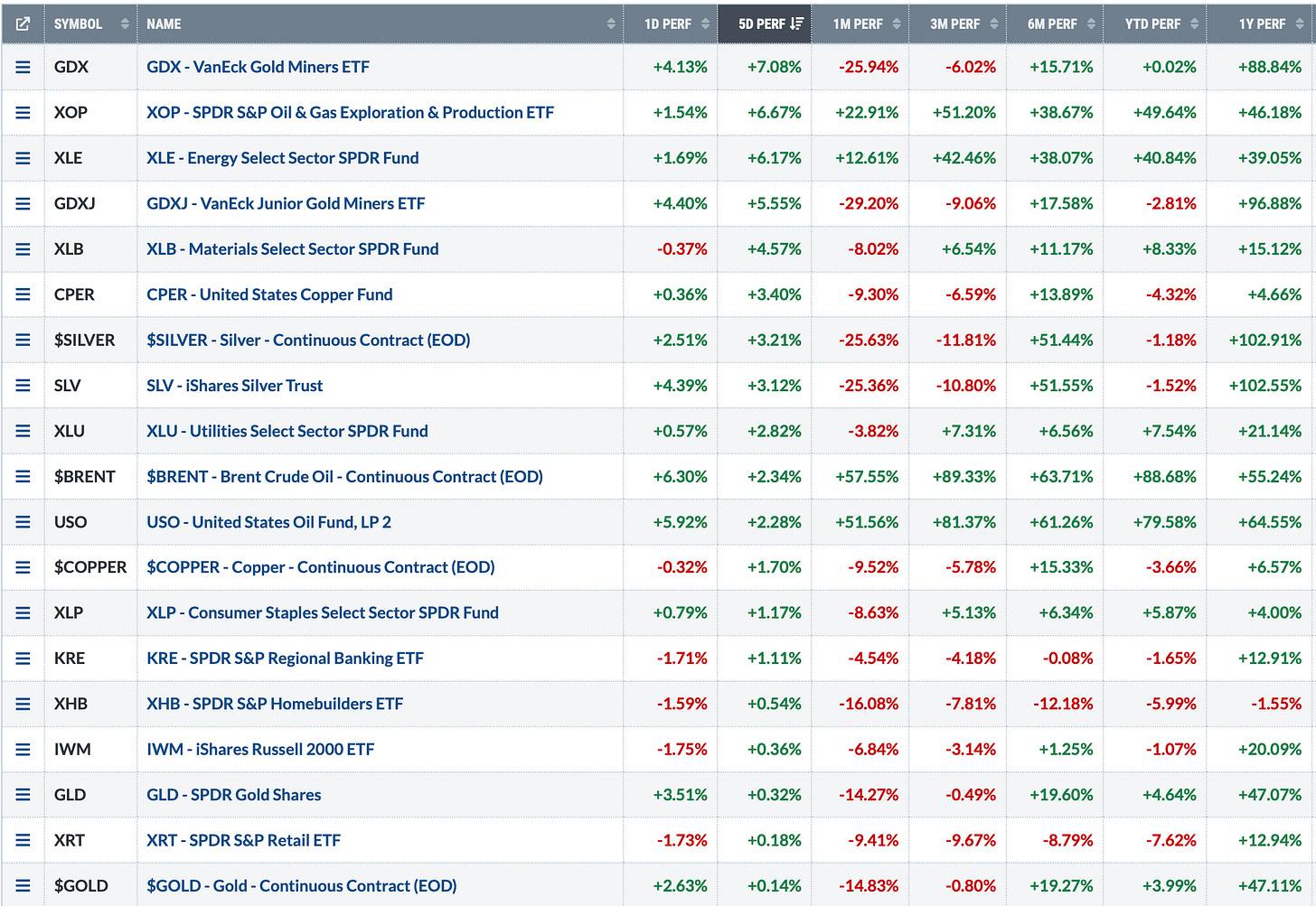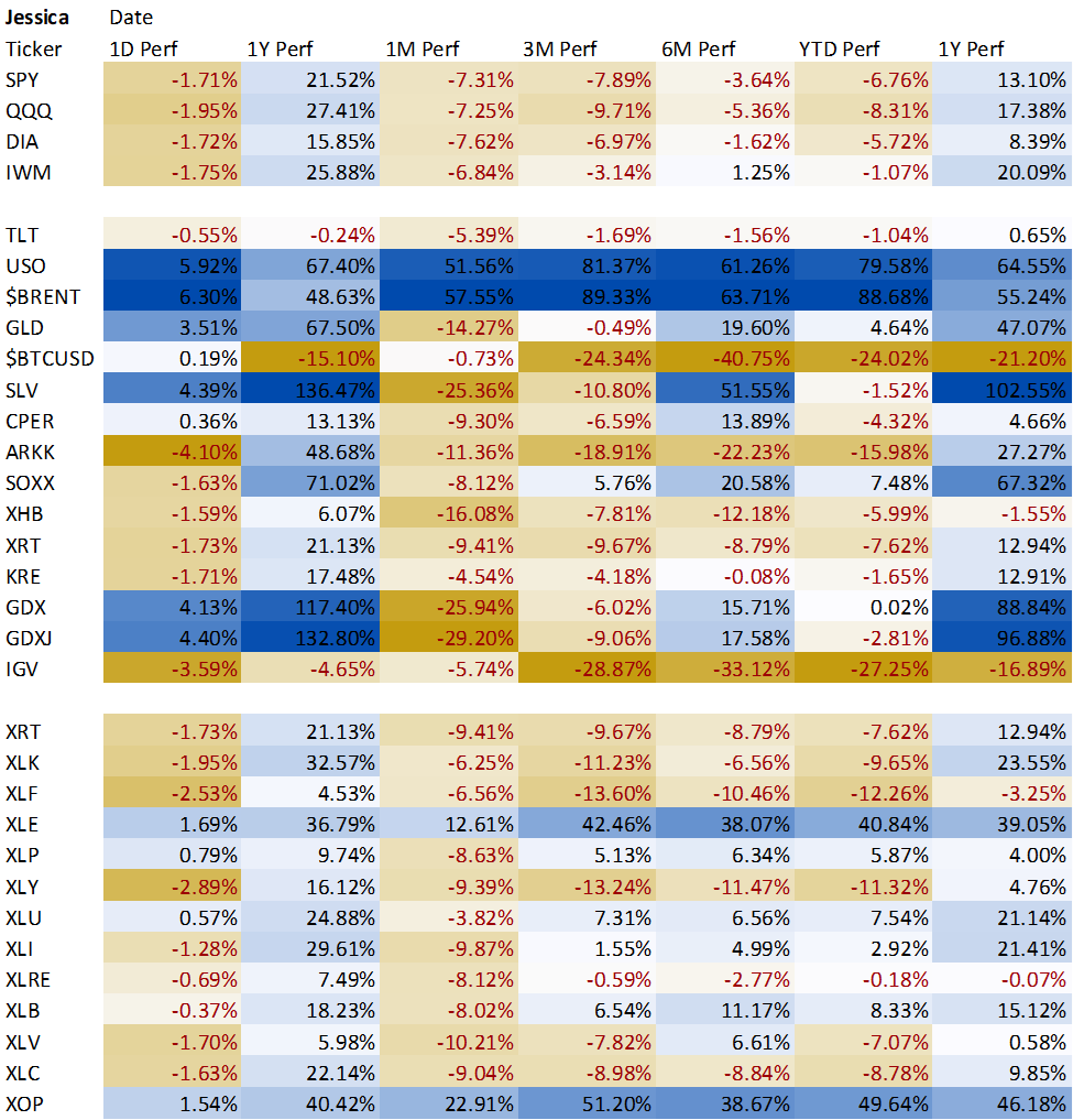 👩🏻💻Key Takeaway: Gold miners (GDX) and junior gold miners (GDXJ) are the bright spot. Looking at trade ideas in NUGT, GDXU, and JNUG.