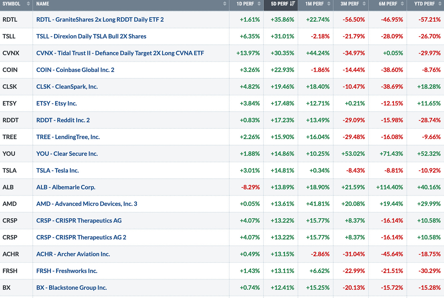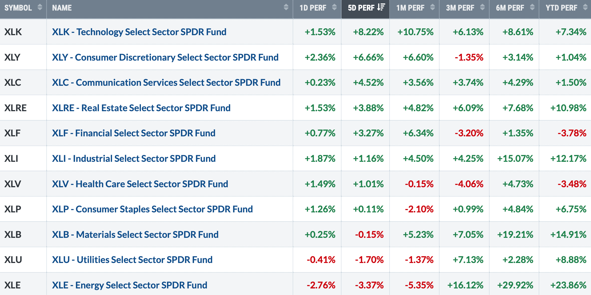Above is the 5-day performance across all 11 sectors.