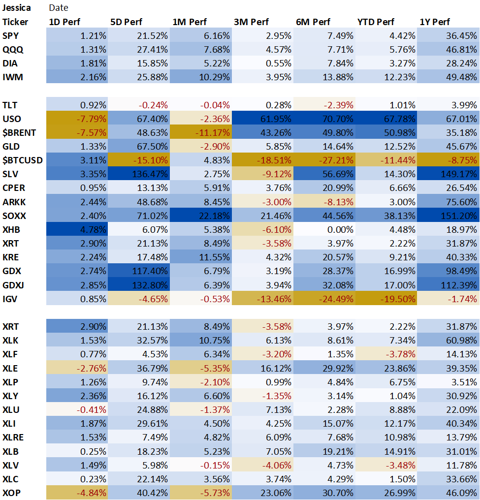 Most assets are up except Oil USO 0.00%↑ .